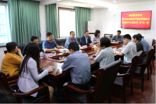为贯彻落实中央、省委和学校党委关于全面从严治党的决策部署和相关要求,5月10日下午,学院召开全面从严治党专题会议暨理论中心组学习(扩大)会,传达学习上级会议精神,总结部署全面从严治党工作。校纪委委员、学报编辑部主任龚刚敏到会指导,学院领导班子成员和全体党员、教职工参加会议。会议由学院党总支纪检委员、副院长高贺主持。