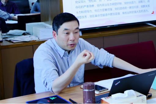 主题党日活动会上,学院院长吴霖和党总支书记王聪分别在两个支部作了《不忘初心 牢记使命 深入学习践行习近平新时代中国特色社会主义思想》专题党课,使党员同志进一步深化对新思想的时代背景、科学内涵、历史贡献等方面内容的理解和把握,增强政治认同、理论认同、情感认同,提高在实际工作中积极践行新思想的自觉性、主动性。