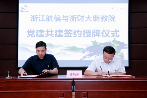 签约授牌仪式上,浙江航信党支部书记、总经理马海对学院党员教工表示热烈欢迎。他介绍了浙江航信近年来全面推进党的建设,不断探索实践国有控股上市公司党建工作新方法新载体新措施所取得的新进展。他指出,此次党建共建活动是企业和学校推动基层党组织建设、提升党建科学化水平的有益尝试,希望双方加强交流学习,创新活动方法,提升活动效果,打造具有影响力的校企党建共建品牌,共同在新时代的长征路上取得新成效、新进展、新胜利。