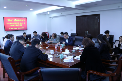 4月24日下午,学院在三楼会议室召开党总支理论中心组学习(扩大)会暨教职工理论学习会,专题学习贯彻习近平总书记重要讲话和全国两会精神。学院党总支理论中心组成员和全体教职工参加会议,会议由党总支书记王聪主持。