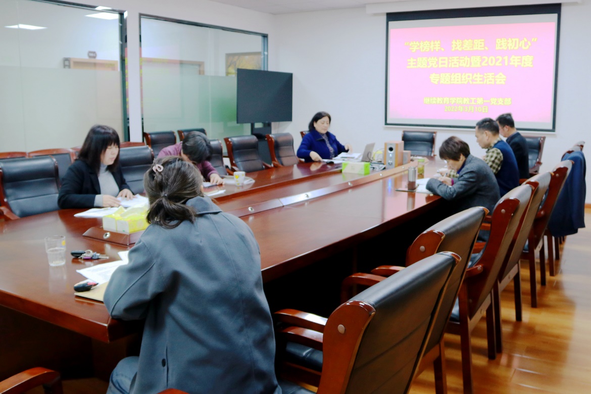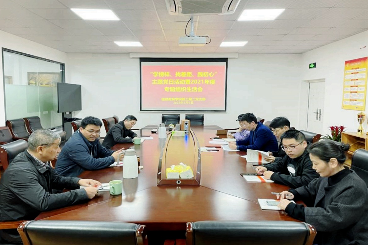 随后,两个教工党支部举行“学榜样、找差距、践初心”主题党日活动,分别召开党员大会,组织开展2021年度组织生活会和民主评议党员活动。会前,各支部充分贯彻学校要求,组织党员认真学习贯彻党章、习近平新时代中国特色社会主义思想、十九届六中全会精神,深入查找突出问题,召开支委会做好前期准备工作。会上,各支部书记代表支委会做述职汇报,对照“六查六看”检查支部建设存在的问题,提出整改措施,并组织全体党员对支部班子的工作、作风等进行评议。支部按照个人自评、党员互评、民主测评的程序,对党员进行评议。支部书记带头开展批评与自我批评,学院班子成员以普通党员身份积极参与评议。大家对照“六查六看”要求,联系思想工作实际,围绕个人在政治、思想、学习、工作、能力、作风等方面的问题作出自我评价,明确努力方向。