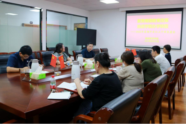 823日,学院召开2022年暑期中层以上干部务虚会。会议深入学习贯彻省第十五次党代会精神和教育部相关文件会议精神围绕“聚焦继续教育改革,推进学院办学转型”主题,全面分析研判学院发展面临的形势、机遇和挑战,谋划推进学院办学转型和高质量发展的目标路径和举措。学院班子成员、各科室负责人参加会议。会议由院长何淑贞主持。