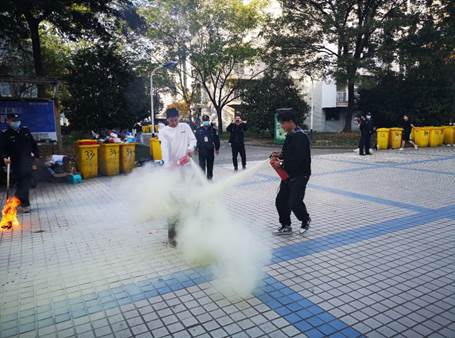 白杨消防中队指导员和紫元公司安保人员分别为师生讲解消防器材的使用及消防安全知识,教职工、学生代表和宿管人员进行了现场灭火演示。