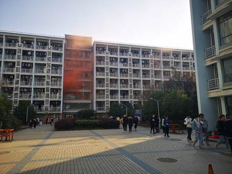 下午1点和3点,宝龙学生公寓和成蹊苑宿舍楼分别模拟起火,顿时烟雾从窗口喷涌而出。班主任引导楼道内学生掩住口鼻,以低姿势从安全通道有序撤离宿舍楼,快速到达安全疏散点。