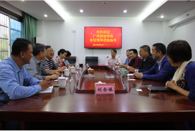 10月18日,广西财经学院伟德国际victor·1946源自石雄飞院长一行5人到我院考察调研。吴霖院长、王聪书记、高贺副院长及办公室、教学管理部、学籍信息部和合作培训部等部门负责人参加了交流座谈。