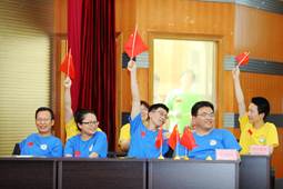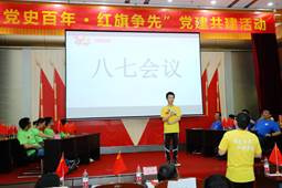 仪式结束后,举行了“党史百年·红旗争先”党史知识竞赛。竞赛活动以寓学于乐为目的,通过竞赛争先、勇夺红旗形式将党史学习有机融入教育活动,引导党员群众深入学习党史党章、传承弘扬红色基因。4家单位分成白、黄、蓝、绿四支队伍,积极参加了红歌合唱、党史竞答、你说我猜和经典重现等四个单元比赛。