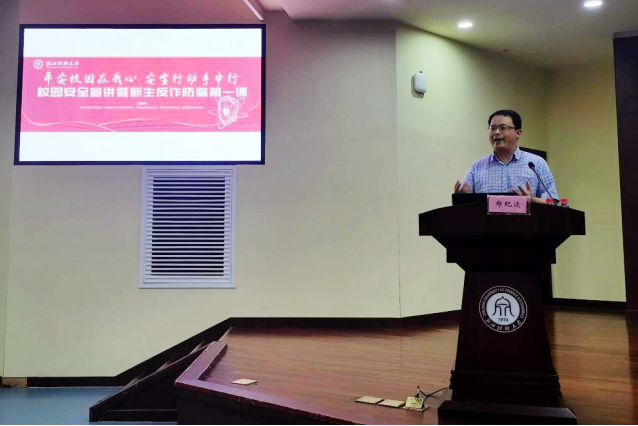 专题讲座中,郑处长、余警官分别结合工作实际和办案经验,重点分析了政治安全、消防安全、金融安全、交通安全、综治安全等与学生日常学习生活密切相关的安全问题形势,列举了近年来高校发生的涉政治宗教事件、网络电信诈骗、消防火灾、交通事故、打架斗殴等实际案例,用详实的数据、生动的案例警醒学生要敬畏法律法规、谨守校级校规,并向同学们讲授了安全防范知识和技巧。