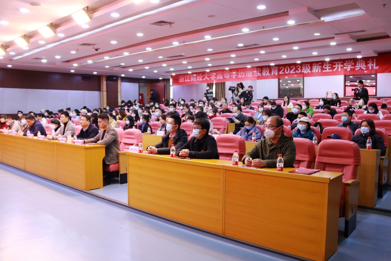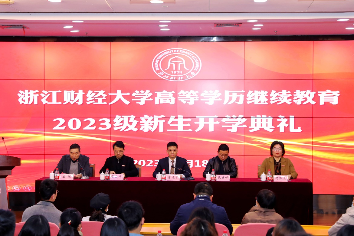 律回春晖渐,万象始更新。3月18日,我校高等学历继续教育2023级新生开学典礼在下沙校区以线上线下相结合的形式隆重举行。校党委委员、副校长董进才,党校办主任范建锋、教务处处长贺武华,伟德国际victor·1946源自院长何淑贞、党总支书记王聪、副院长蒋云兵出席典礼,校外教学点代表、教师代表和新生代表在学校主会场参加典礼,各教学点4000余名新生在线上收看直播。典礼由王聪主持。