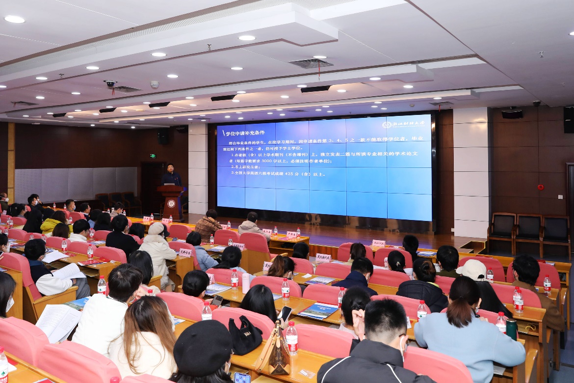 教师代表、外国语学院张迅副教授勉励同学们要践行“进德修业,与时偕行”校训,强决心、树信心、立恒心,坚持终身学习理念,以自身能力素质的提升积极应对日新月异的时代发展。