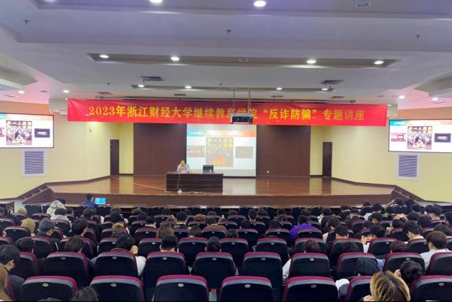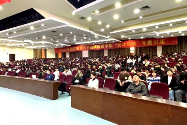 为进一步筑牢校园反诈“防火墙”,提高学生反诈防骗意识和能力,我院于11月29日下午在下沙校区学术中心报告厅举行2023级新生“反诈防骗”专题讲座。校保卫处处长郑纪达受邀作主讲嘉宾,我院全体2023级全日制助学生参加宣讲会。