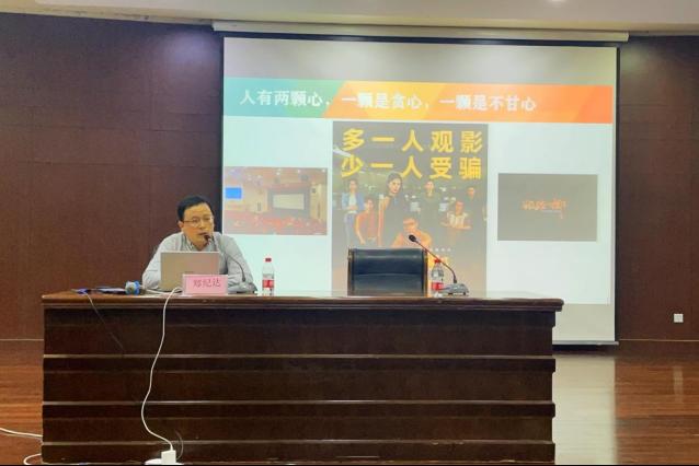 在专题宣讲中,郑处长利用视频、漫画等方式,全方面讲解了什么是电信诈骗、电信诈骗的常见方式、如何防范电信诈骗和上当后的补救措施等内容,对在师生群体中多发的“网络刷单点赞”“购买游戏币”“网络购物”“冒充熟人”等典型诈骗案例做了重点分析,语言生动形象,内容发人深省。同时,他提醒广大师生要提高自我保护和反诈防骗意识,不要轻易将银行卡号、身份证号等个人信息告知他人,发现电信诈骗违法犯罪行为第一时间报警,倡导树立正确价值观、消费观。